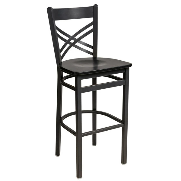 BFM Seating Akrin Sand Black Steel Bar Height Chair With Cross Steel Back And Black Wooden Seat