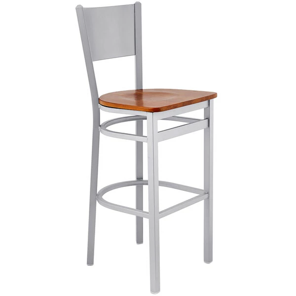 BFM Seating Axel Silver Mist Steel Bar Height Chair With Cherry Wood Seat