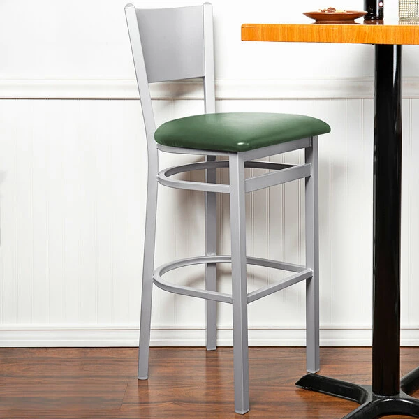 BFM Seating Axel Silver Mist Steel Bar Height Chair With Green Padded Vinyl Seat