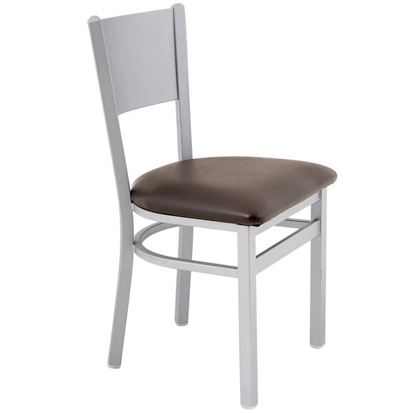 BFM Seating Axel Silver Mist Steel Side Chair With Dark Brown Padded Vinyl Seat