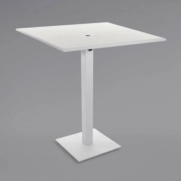 BFM Seating Beachcomber-Margate 36″ Square White Aluminum Bar Height Outdoor / Indoor Table With Square Base And Umbrella Hole