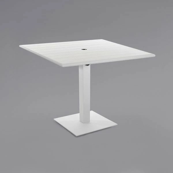 BFM Seating Beachcomber-Margate 36″ Square White Aluminum Dining Height Outdoor / Indoor Table With Square Base And Umbrella Hole
