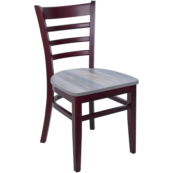 BFM Seating Berkeley Dark Mahogany Beechwood Ladder Back Side Chair With Relic Chestnut Seat