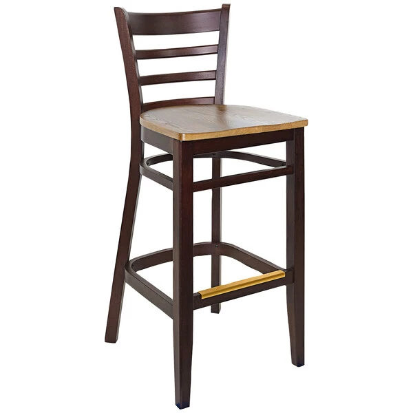 BFM Seating Berkeley Dark Walnut Beechwood Ladder Back Barstool With Autumn Ash Wood Seat