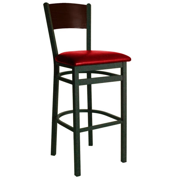 BFM Seating Dale Sand Black Metal Bar Height Chair With Walnut Finish Wooden Back And 2″ Red Vinyl Seat