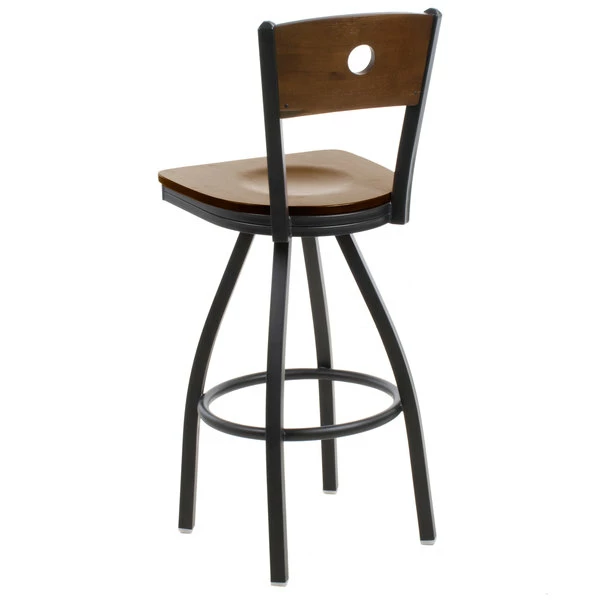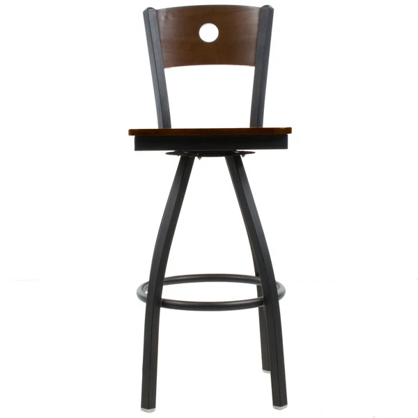 BFM Seating Darby Sand Black Metal Bar Height Chair With Walnut Wooden Back And Swivel Seat
