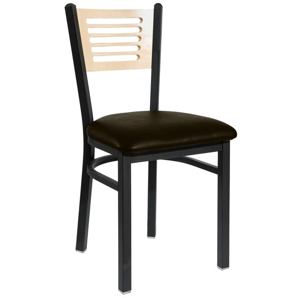 BFM Seating Espy Sand Black Metal Side Chair With Natural Wooden Back And 2″ Dark Brown Vinyl Seat