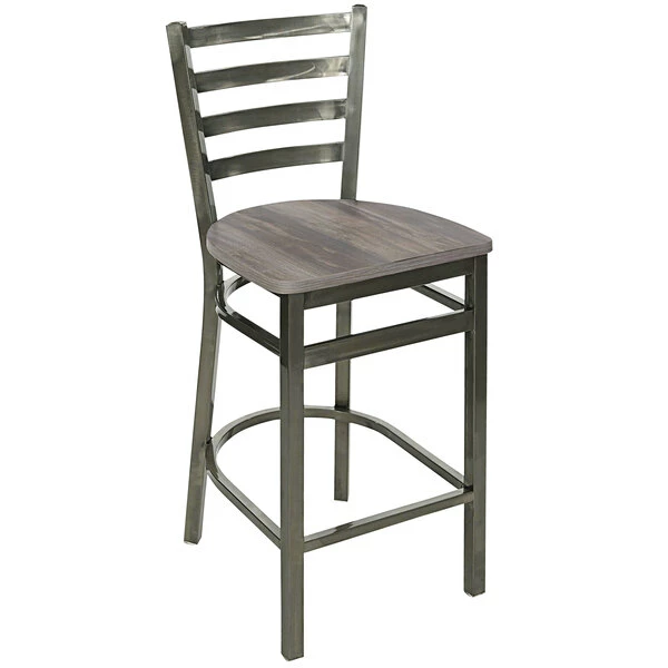 BFM Seating Lima Clear Coated Steel Counter Height Barstool With Relic Chestnut Seat