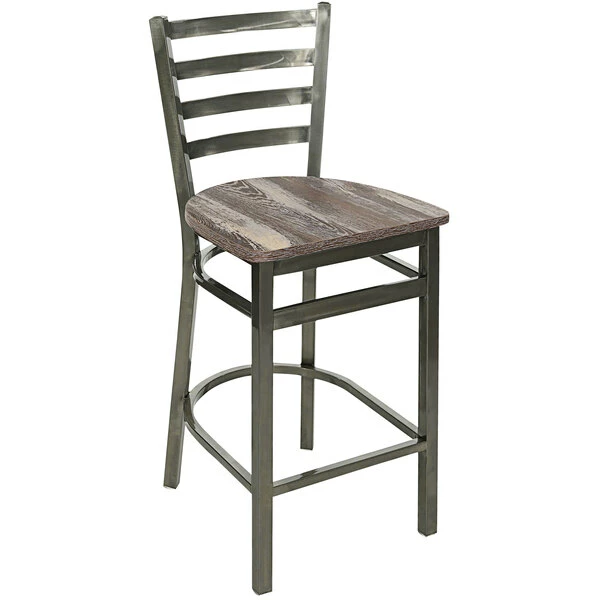 BFM Seating Lima Clear Coated Steel Counter Height Barstool With Relic Farmhouse Seat