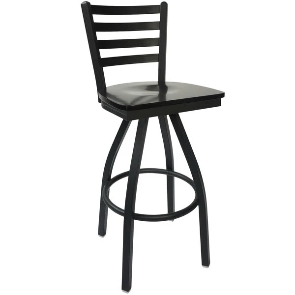 BFM Seating Lima Sand Black Steel Bar Height Chair With Black Wood Swivel Seat