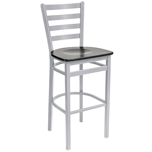 BFM Seating Lima Silver Mist Steel Bar Height Chair With Black Wooden Seat
