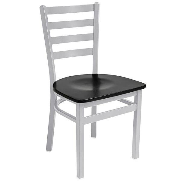 BFM Seating Lima Silver Mist Steel Side Chair With Black Wooden Seat