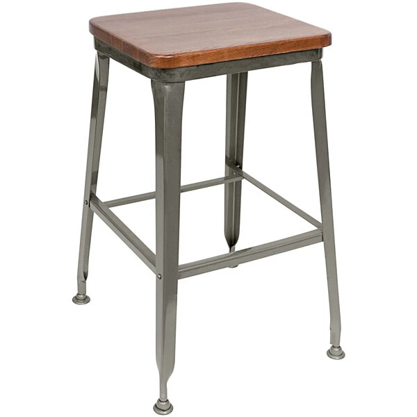 BFM Seating Lincoln Clear Coated Steel Backless Bar Stool With Ash Wooden Seat