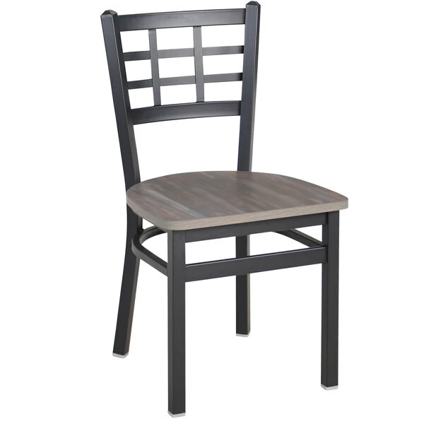 BFM Seating Marietta Sand Black Steel Window Back Chair With Relic Chestnut Melamine Seat