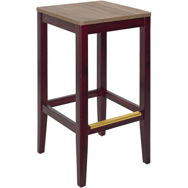 BFM Seating Stockton Dark Mahogany Beechwood Square Backless Barstool With Relic Knotty Pine Seat