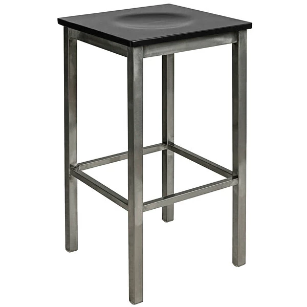 BFM Seating Trent Clear Coated Steel Bar Stool With Black Wooden Seat