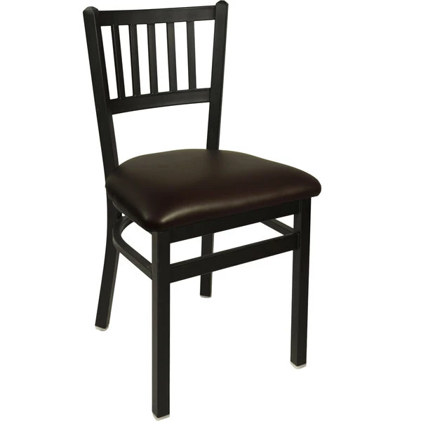 BFM Seating Troy Sand Black Steel Side Chair With 2″ Dark Brown Vinyl Seat