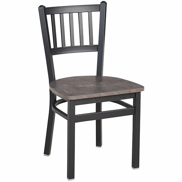 BFM Seating Troy Sand Black Steel Slat Back Chair With Relic Rustic Copper Melamine Seat