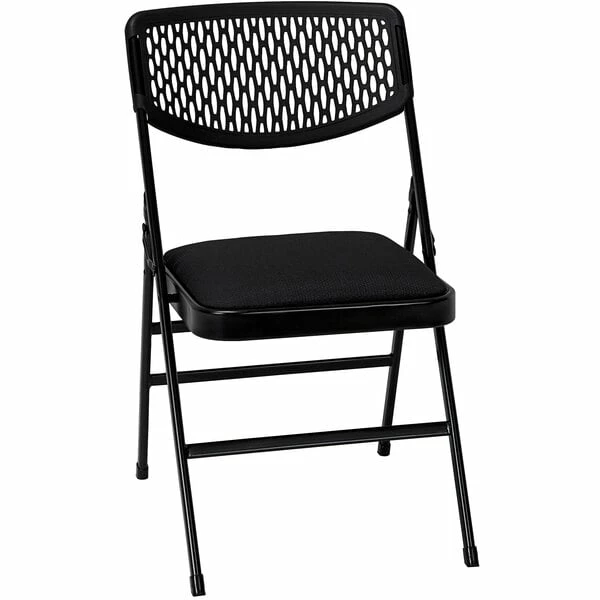 Bridgeport Essentials C865BP60BHC4E Black Resin Folding Chair With Fabric Padded Seat And Mesh Back – 4/Pack