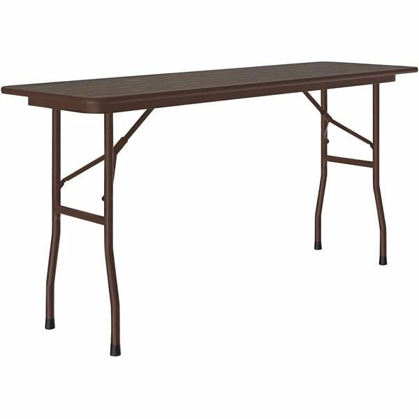 Correll 18″ X 96″ Walnut Thermal-Fused Laminate Top Folding Table With Brown Frame