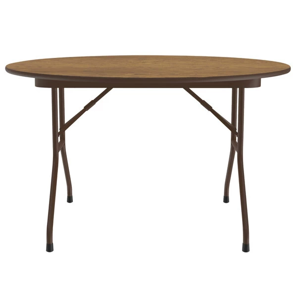 Correll 48″ Round Medium Oak Light Duty Melamine Folding Table With Brown Frame