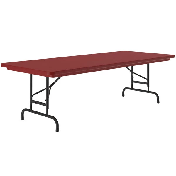 Correll Adjustable Height Folding Table, 30″ X 72″ Plastic, Red – Standard Legs – R-Series