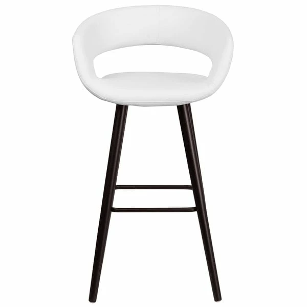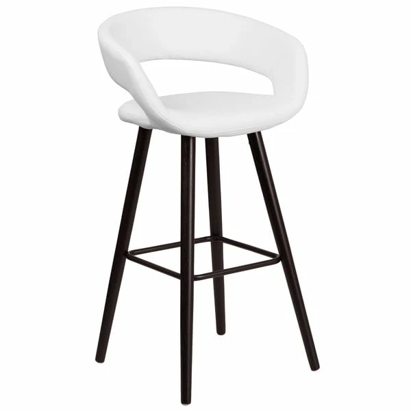 Flash Furniture CH-152560-WH-VY-GG Brynn Series Cappuccino Wood Bar Height Stool With White Vinyl Seat
