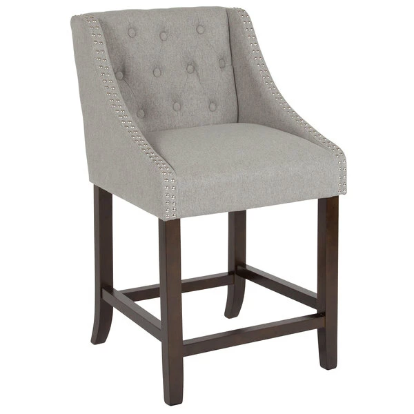 Flash Furniture CH-182020-T-24-LTGY-F-GG Carmel Series Counter Height Stool In Light Gray Tufted Fabric With Walnut Frame And Nail Trim Accent