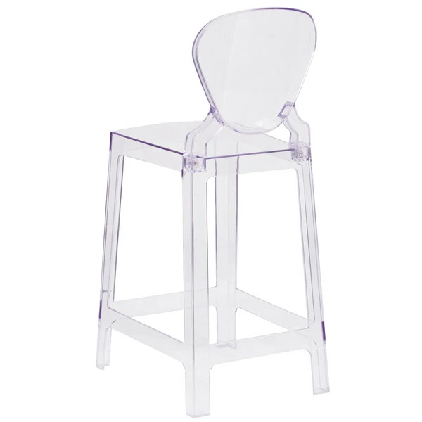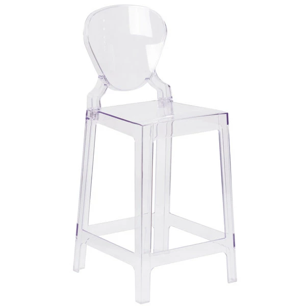 Flash Furniture OW-TEARBACK-24-GG Ghost Transparent Polycarbonate Outdoor / Indoor Counter Height Stool With Tear Back