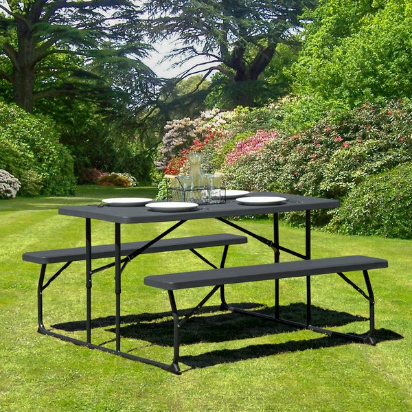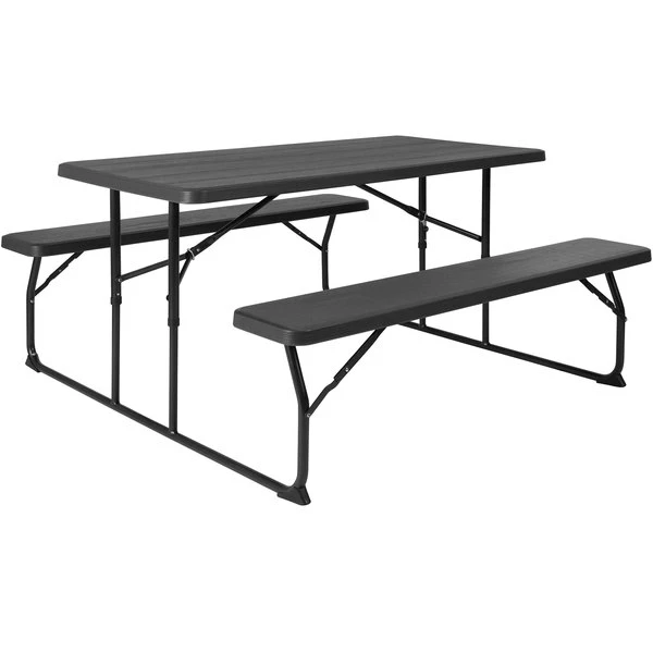 Flash Furniture RB-EBB-1470FD-GG 53 3/4″ X 58 1/4″ Charcoal Plastic Folding Table With 2 Benches
