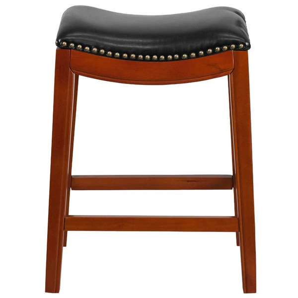 Flash Furniture TA-411026-LC-GG Light Cherry Wood Counter Height Stool With Black Leather Saddle Seat