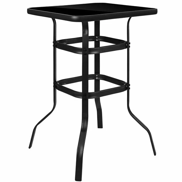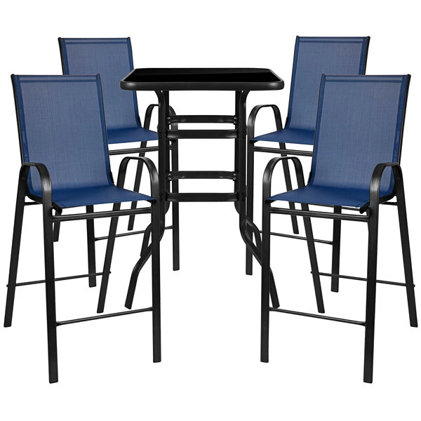 Flash Furniture TLH-073H092H4-NV-GG 27 1/2″ X 27 1/2″ X 39 1/2″ Outdoor Glass Bar Table Set With 4 Navy Chairs