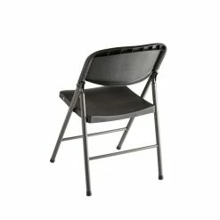 Lancaster Table & Seating Black Contoured Injection Molded Folding Chair With Charcoal Frame