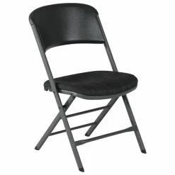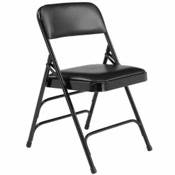National Public Seating 1310 Black Metal Folding Chair With 1 1/4″ Caviar Black Vinyl Padded Seat