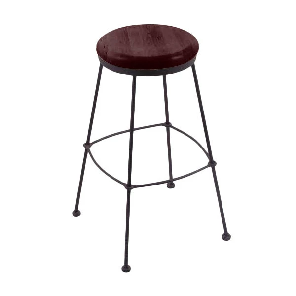 BFM Seating Trent Clear Coated Steel Backless Barstool With Relic Knotty Pine Seat