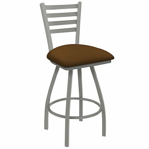 Holland Bar Stool Holland Barstool XL 410 Jackie 30″ Ladderback Swivel Bar Stool With Anodized Nickel Finish And Canter Thatch Seat