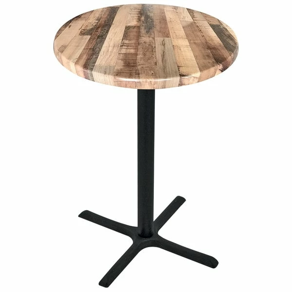 Holland Bar Stool OD211-3042BWOD30RRustic 30″ Round Rustic Wood Laminate Outdoor / Indoor Bar Height Table With Cross Base