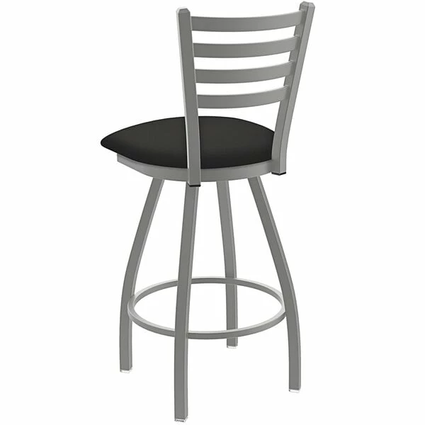 Holland Bar Stool XL 410 Jackie 25″ Ladderback Swivel Counter Stool With Anodized Nickel Finish And Canter Iron Padded Seat