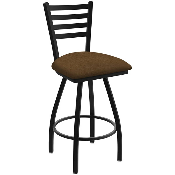 Holland Bar Stool XL 410 Jackie 30″ Ladderback Swivel Bar Stool With Black Wrinkle Finish And Rein Thatch Seat