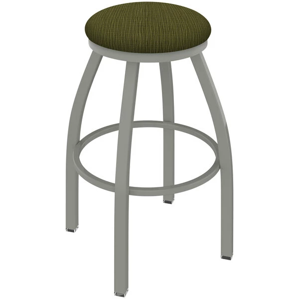 BFM Seating Axel Silver Mist Steel Bar Height Chair With Green Padded Vinyl Seat