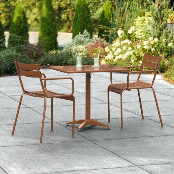 Lancaster Table & Seating 24″ X 32″ Brown Powder-Coated Aluminum Dining Height Outdoor Table With Umbrella Hole And 2 Arm Chairs