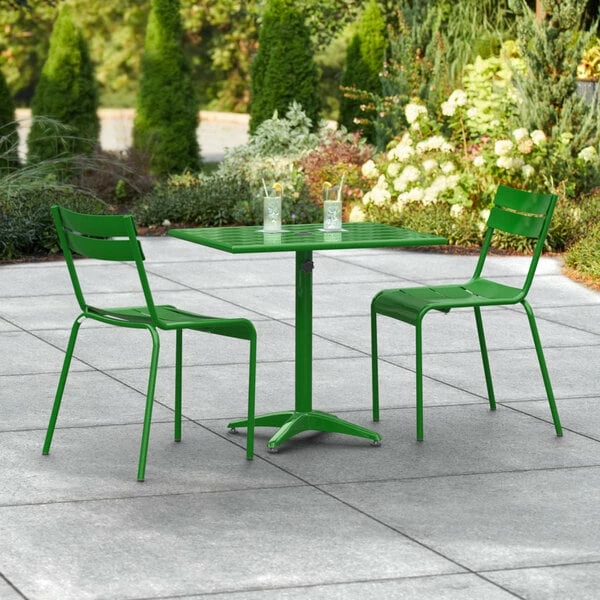 Lancaster Table & Seating 24″ X 32″ Green Powder-Coated Aluminum Standard Height Outdoor Table With Umbrella Hole And 2 Side Chairs