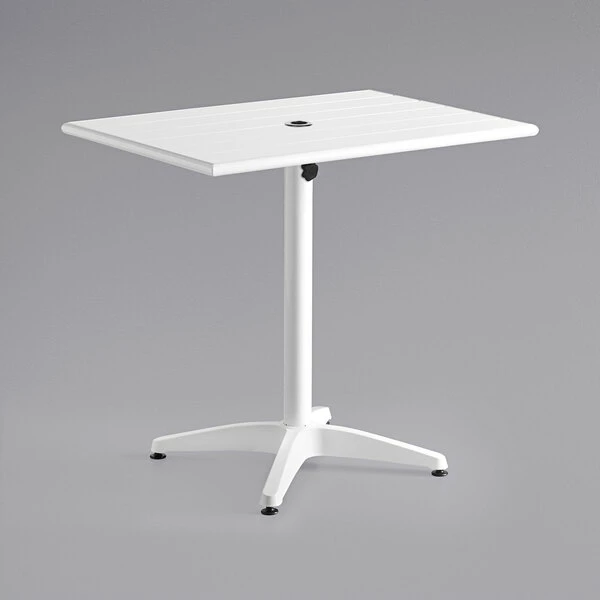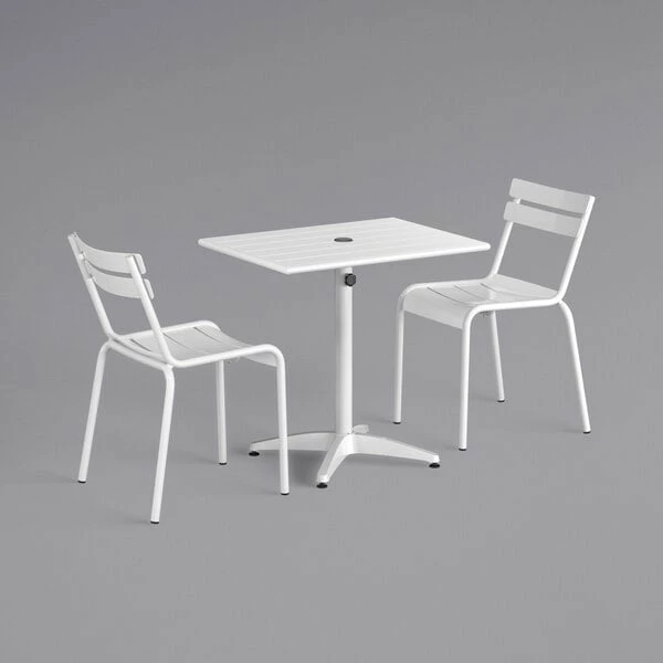 Lancaster Table & Seating 24″ X 32″ White Powder-Coated Aluminum Dining Height Outdoor Table With Umbrella Hole And 2 Side Chairs