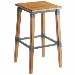 Lancaster Table & Seating Rustic Industrial Backless Bar Stool With Antique Natural Wood Finish