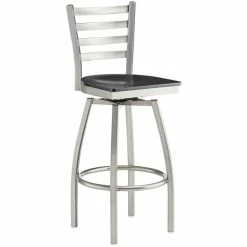 Lancaster Table & Seating Clear Coat Finish Ladder Back Swivel Bar Stool With Black Wood Seat