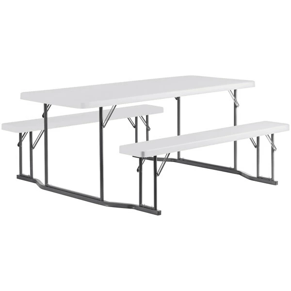 Lancaster Table & Seating 30″ X 71″ Rectangular White Plastic Folding Picnic Table With Attached Benches