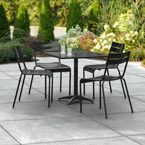 Lancaster Table & Seating 32″ X 32″ Black Powder-Coated Aluminum Standard Height Outdoor Table With Umbrella Hole And 4 Side Chairs