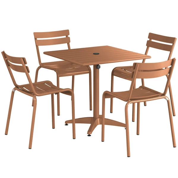 Lancaster Table & Seating 32″ X 32″ Brown Powder-Coated Aluminum Dining Height Outdoor Table With Umbrella Hole And 4 Side Chairs