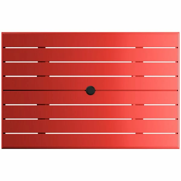 Lancaster Table & Seating 32″ X 48″ Red Powder-Coated Aluminum Dining Height Outdoor Table With Umbrella Hole And 4 Side Chairs