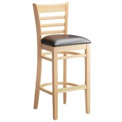 Lancaster Table & Seating Natural Ladder Back Bar Height Chair With 2 1/2″ Dark Brown Padded Seat